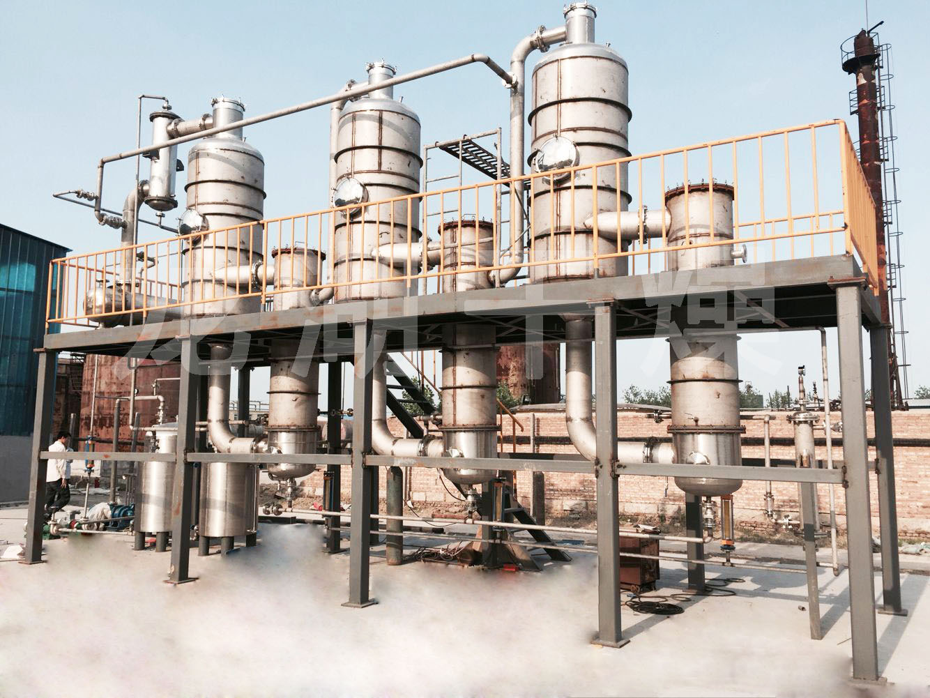 張家港某公司金屬清洗廢水使用現(xiàn)場,蒸發(fā)量每小時(shí)200kg,雙效蒸發(fā)器,配備電加熱蒸汽發(fā)生器